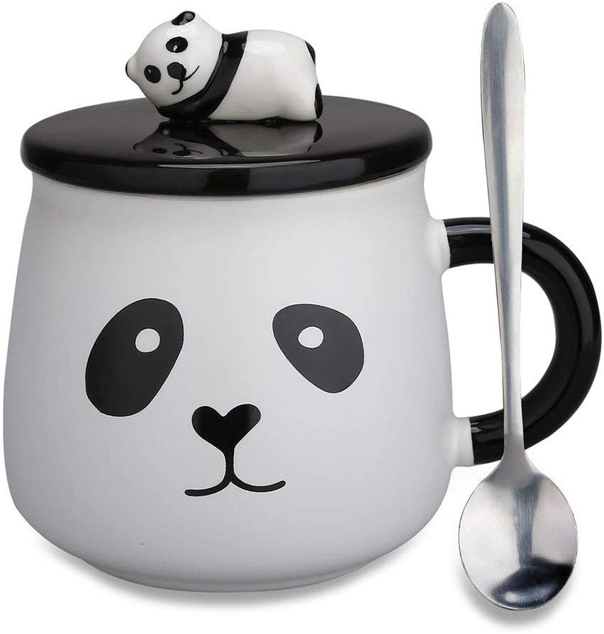10. Cute Panda Ceramic Mug with Ceramic Lid and Spoon